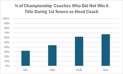 33% of Super Bowl winning head coaches had achieved their championship after failing to win a title with their first team. Here’s all sports:
